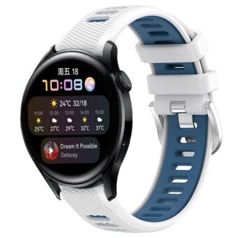 Για το Huawei Watch 3 Pro Νέα 22mm Αθλητική ζώνη ρολογιού σιλικόνης με ατσάλινη πόρπη δύο χρωμάτων (λευκό + μπλε)