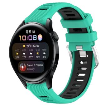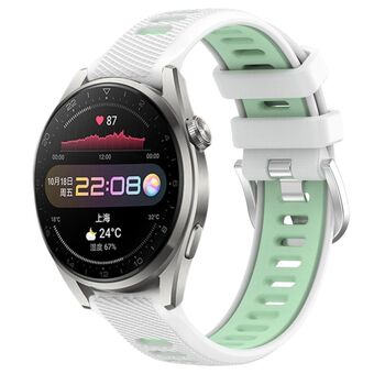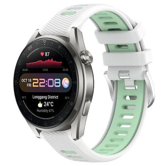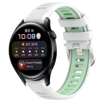 Για το Huawei Watch 3 Pro Νέα 22mm Αθλητική ζώνη ρολογιού σιλικόνης με ατσάλινη αγκράφα δύο χρωμάτων (λευκό + γαλαζοπράσινο)