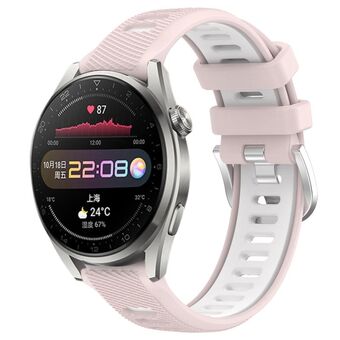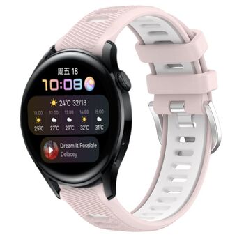 Για το Huawei Watch 3 Pro 22mm Αθλητική ζώνη ρολογιού σιλικόνης με ατσάλινη πόρπη δύο χρωμάτων (ροζ+λευκό)