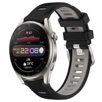 Για το Huawei Watch 3 Pro Νέα 22mm Αθλητική ζώνη ρολογιού σιλικόνης με ατσάλινη πόρπη δύο χρωμάτων (μαύρο + γκρι)