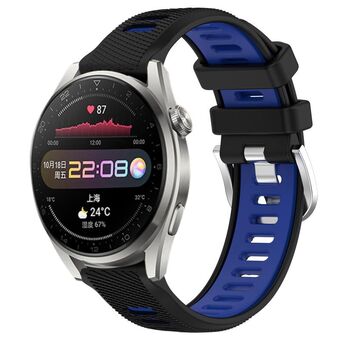 Για το Huawei Watch 3 Pro Νέα 22mm Αθλητική ζώνη ρολογιού σιλικόνης με ατσάλινη πόρπη δύο χρωμάτων (μαύρο + μπλε)
