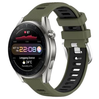 Για το Huawei Watch 3 Pro Νέα 22mm Αθλητική ζώνη ρολογιού σιλικόνης με ατσάλινη πόρπη δύο χρωμάτων (πράσινο στρατού + μαύρο)