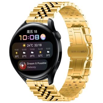 Για Huawei Watch 3 / 3 Pro Five Bull Half Round Stainless Steel Watch Band + Εργαλείο αφαίρεσης λουριού (χρυσό)