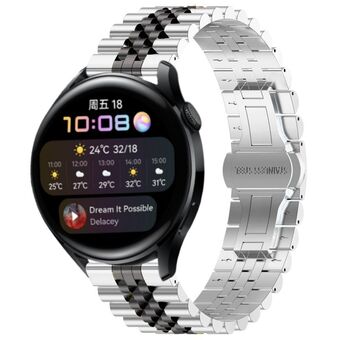 Για Huawei Watch 3 / 3 Pro Five Bull Half Round Stainless Steel Watch Band + Εργαλείο αφαίρεσης λουριού (Ασημί+Μαύρο)