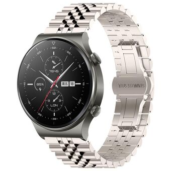 Για το Huawei Watch GT2 Pro / GT 2e Five Bull Half Round Stainless Steel Watch Band + Εργαλείο αφαίρεσης λουριού (χρώμα Starlight)