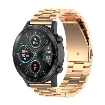 Για το Honor Watch GS 3i 22mm Τρεις χάντρες από ανοξείδωτο χάλυβα μεταλλική ζώνη ρολογιού (ροζ χρυσό)
