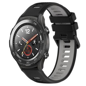 Για το Huawei Watch 2 20 χιλιοστά αθλητική ζώνη ρολογιού σιλικόνης δύο χρωμάτων (μαύρο + γκρι)