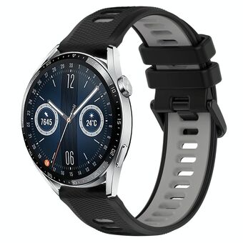 Για το Huawei Watch GT3 46mm 22mm Αθλητική ζώνη ρολογιού σιλικόνης δύο χρωμάτων (μαύρο + γκρι)