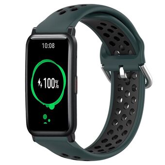 Για το Huawei Watch Buds 22mm διάτρητη αναπνεύσιμη αθλητική ζώνη ρολογιού σιλικόνης (Olive Green + Μαύρο)