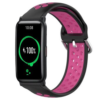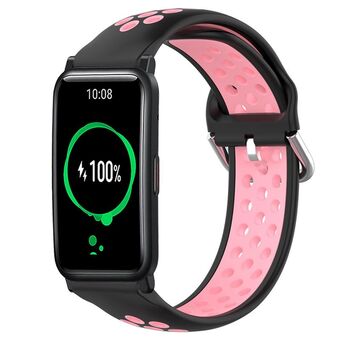 Για το Huawei Watch Buds 22mm διάτρητη αναπνεύσιμη αθλητική ζώνη ρολογιού σιλικόνης (μαύρο + ροζ)