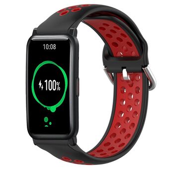 Για το Huawei Watch Buds 22mm διάτρητη αναπνεύσιμη αθλητική ζώνη ρολογιού σιλικόνης (μαύρο + κόκκινο)