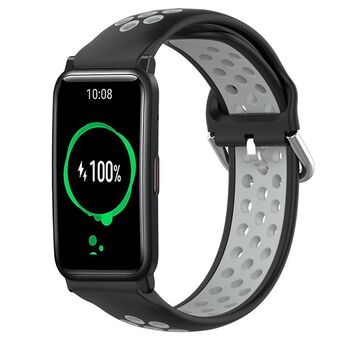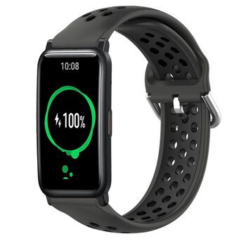 Για το Huawei Watch Buds 22mm διάτρητη αναπνεύσιμη αθλητική ζώνη ρολογιού σιλικόνης (μαύρο + γκρι)