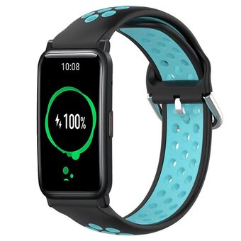 Για το Huawei Watch Buds 22mm διάτρητη αναπνεύσιμη αθλητική ζώνη ρολογιού σιλικόνης (μαύρο + μπλε)