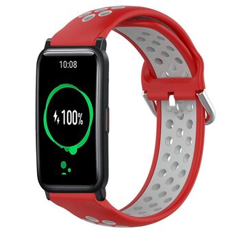 Για το Huawei Watch Buds 22mm διάτρητη αναπνεύσιμη αθλητική ζώνη ρολογιού σιλικόνης (κόκκινο + γκρι)