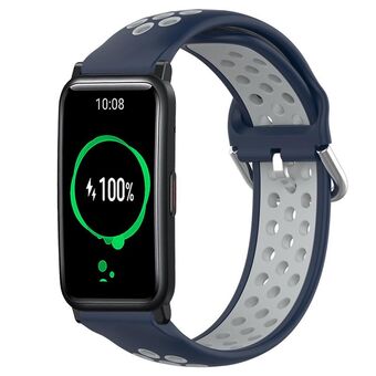 Για το Huawei Watch Buds 22mm διάτρητη αναπνεύσιμη αθλητική ζώνη ρολογιού σιλικόνης (μπλε μεσάνυχτα + γκρι)