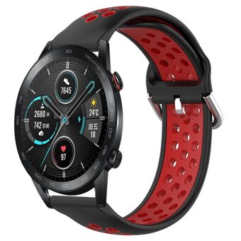 Για το Honor Magic Watch2 42mm 20mm διάτρητη αναπνεύσιμη αθλητική ζώνη ρολογιού σιλικόνης (μαύρο + κόκκινο)
