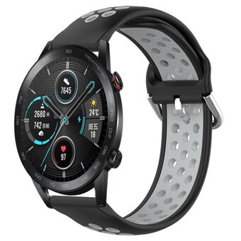 Για το Honor Magic Watch2 42mm 20mm διάτρητη αναπνεύσιμη αθλητική ζώνη ρολογιού σιλικόνης (μαύρο + γκρι)