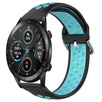 Για το Honor Magic Watch2 42mm 20mm διάτρητη αναπνεύσιμη αθλητική ζώνη ρολογιού σιλικόνης (μαύρο + μπλε)