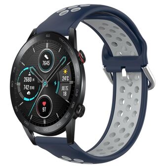 Για το Honor Magic Watch2 42mm 20mm διάτρητη αναπνεύσιμη αθλητική ζώνη ρολογιού σιλικόνης (μπλε μεσάνυχτα + γκρι)