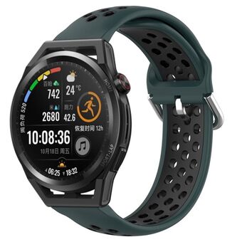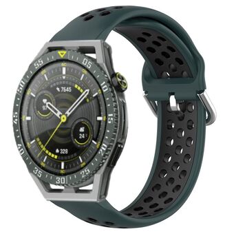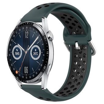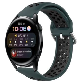 Για το Huawei Watch GT3 46mm 22mm διάτρητη αναπνεύσιμη αθλητική ζώνη ρολογιού σιλικόνης (Olive Green + Black)