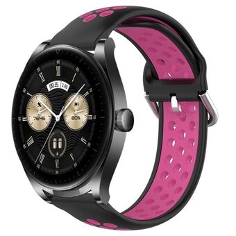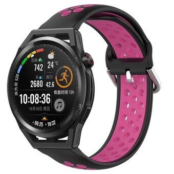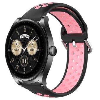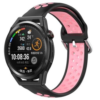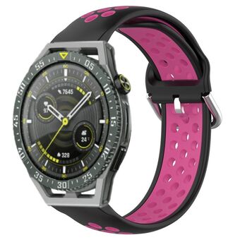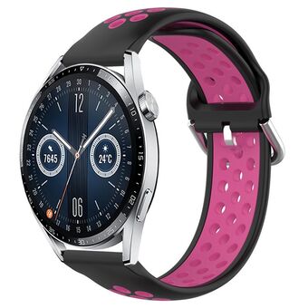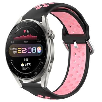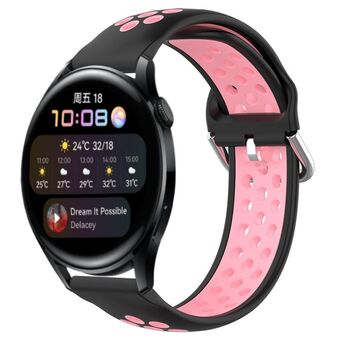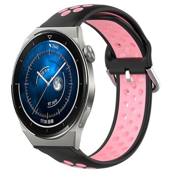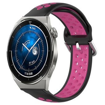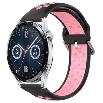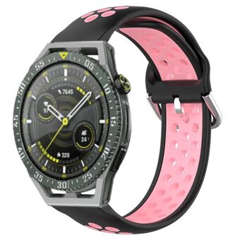 Για το Huawei Watch GT3 46mm 22mm διάτρητη αναπνεύσιμη αθλητική ζώνη ρολογιού σιλικόνης (μαύρο + ροζ)