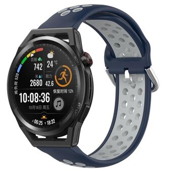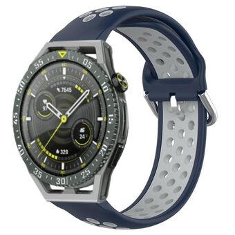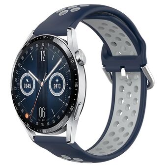 Για το Huawei Watch GT3 46mm 22mm διάτρητη αναπνεύσιμη αθλητική ζώνη ρολογιού σιλικόνης (Μπλε μεσάνυχτα + γκρι)