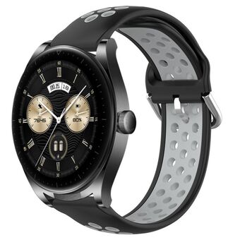 Για το Huawei Watch GT Runner 22mm διάτρητη αναπνεύσιμη αθλητική ζώνη ρολογιού σιλικόνης (λευκό + μαύρο)