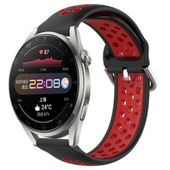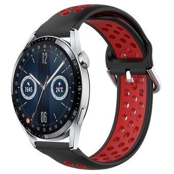 Για το Huawei Watch GT3 46mm 22mm διάτρητη αναπνεύσιμη αθλητική ζώνη ρολογιού σιλικόνης (μαύρο + κόκκινο)
