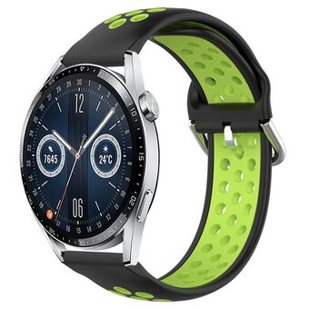 Για το Huawei Watch 3 Pro 22mm διάτρητη αναπνεύσιμη αθλητική ζώνη ρολογιού σιλικόνης (πράσινο+μαύρο)