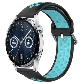 Για το Huawei Watch GT3 46mm 22mm διάτρητη αναπνεύσιμη αθλητική ζώνη ρολογιού σιλικόνης (μαύρο + μπλε)