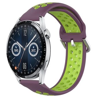 Για το Huawei Watch GT3 46mm 22mm διάτρητη αναπνεύσιμη αθλητική ζώνη ρολογιού σιλικόνης (μοβ + ασβέστης)