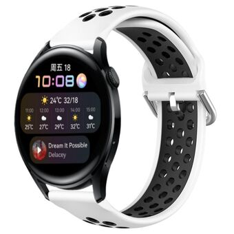 Για το Huawei Watch GT3 46mm 22mm διάτρητη αναπνεύσιμη αθλητική ζώνη ρολογιού σιλικόνης (λευκό + μαύρο)