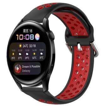 Για το Huawei Watch 3 Pro 22mm διάτρητη αναπνεύσιμη αθλητική ζώνη ρολογιού σιλικόνης (μαύρο + κόκκινο)
