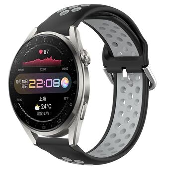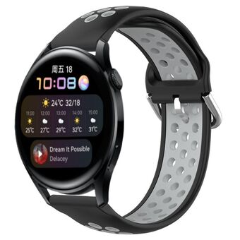 Για το Huawei Watch 3 22mm διάτρητη αναπνεύσιμη αθλητική ζώνη ρολογιού σιλικόνης (μαύρο + γκρι)