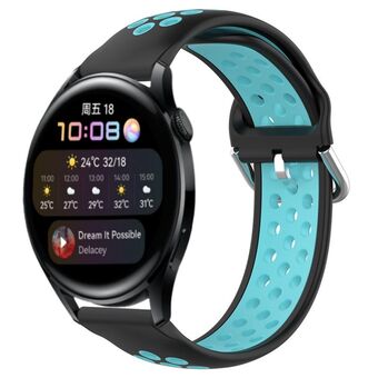 Για το Huawei Watch 3 22mm διάτρητη αναπνεύσιμη αθλητική ζώνη ρολογιού σιλικόνης (μαύρο + μπλε)