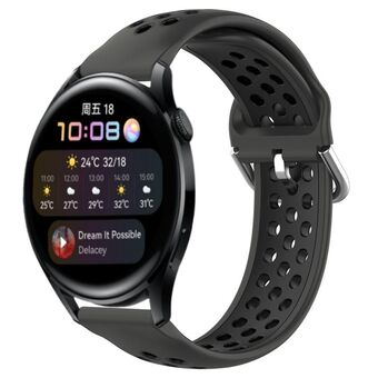 Για το Huawei Watch 3 22mm διάτρητη αναπνεύσιμη αθλητική ζώνη ρολογιού σιλικόνης (μαύρο)
