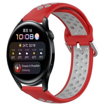 Για το Huawei Watch 3 22mm διάτρητη αναπνεύσιμη αθλητική ζώνη ρολογιού σιλικόνης (κόκκινο + γκρι)