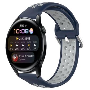 Για το Huawei Watch 3 22mm διάτρητη αναπνεύσιμη αθλητική ζώνη ρολογιού σιλικόνης (Μπλε μεσάνυχτα + γκρι)