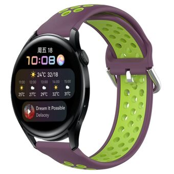 Για το Huawei Watch 3 22mm διάτρητη αναπνεύσιμη αθλητική ζώνη ρολογιού σιλικόνης (μοβ + ασβέστης)