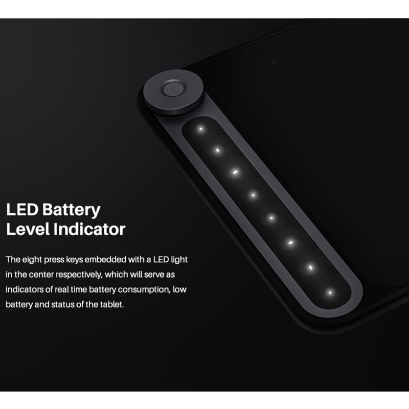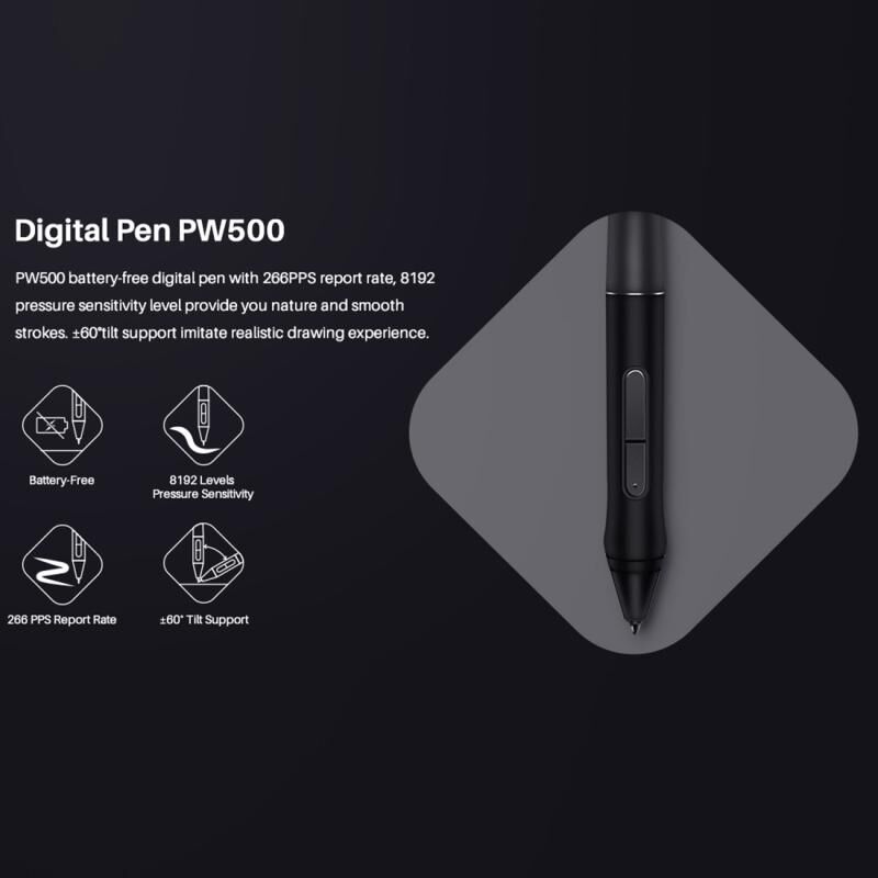 7. Battery-free digital pen with 266 PPS report rate, 8192 pressure sensitivity level provide you nature and smooth strokes, +- 60 degrees tilt support imitate realistic drawing experience.
