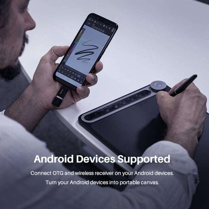 6. Connect OTG and wireless receiver on you Android devices, turn your Android devices into portable canvas.
