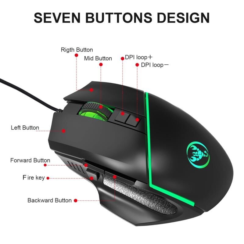 6. 8 κουμπιά (Αριστερό, Δεξί, Μεσαίο, Εμπρός, Πίσω, DPI+/DPI-, κουμπί πυροδότησης)