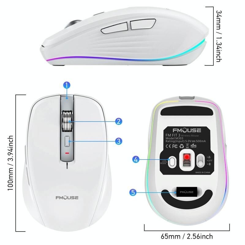 Ασύρματο ποντίκι HXSJ M303 2400DPI Dual Mode 2.4GHz + Bluetooth 5.1 (Λευκό) (HXSJ)