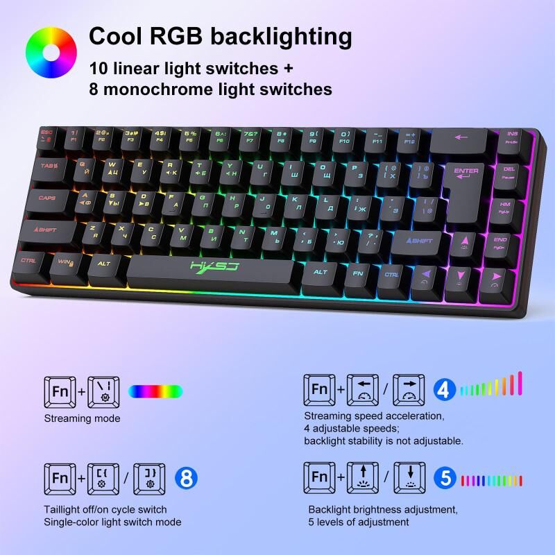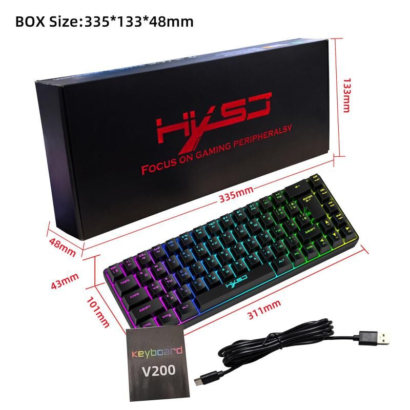 HXSJ V200 Russian Version Wired RGB Backlit Mechanical Keyboard 68 Key Caps, Cable Length: 1.7m(Black) (HXSJ)