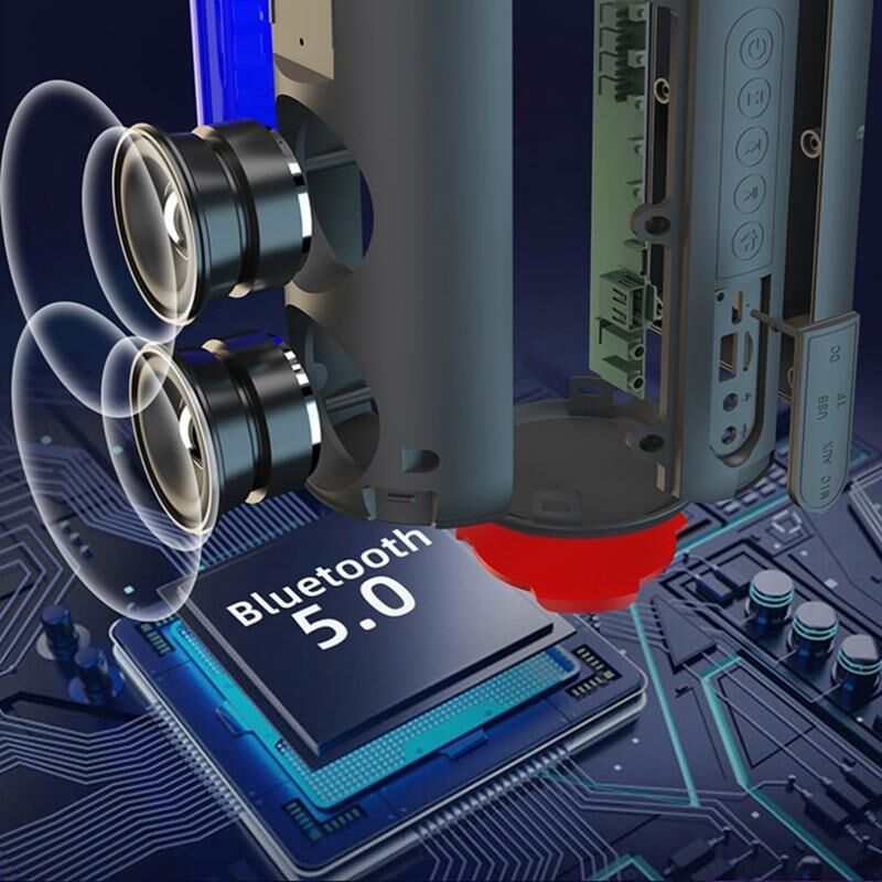 Χαρακτηριστικά: 1. Μια ποικιλία τρόπων αναπαραγωγής, μπορείτε να επιλέξετε κατά βούληση 2. Υποστήριξη σύνδεσης σειράς TWS για να σχηματιστεί ένα εφέ τρισδιάστατου περιφερειακού ήχου 3. Αδιάβροχο IPX6, ασφαλές και αξιόπιστο 4. Ενσωματωμένα φώτα LED 16,8 εκατομμυρίων χρωμάτων για να δημιουργήσετε μια ατμόσφαιρα 5. Χρήση ιμιδιτασιόν λουρί από δέρμα PU, ανθεκτικό και πιο βολικό στη μεταφορά 6. Χρήση ηχείων πλήρους εύρους 20W, εκρηκτικά βαθιά μπάσα Παράμετροι προϊόντος: 1. Υλικό: ABS, ηλεκτρονικά εξαρτήματα 2. Μέθοδος σύνδεσης: Σύνδεση Bluetooth 3. Πρωτόκολλο Bluetooth: 5.0 4. Αποτελεσματική απόσταση: 10 μέτρα 5. Τύπος διεπαφής: USB 6. Απόκριση συχνότητας: 40Hz-20KHz 7. Ισχύς εξόδου: 2x10W 8. Αναλογία σήματος προς θόρυβο: 75dB 9. Ενσωματωμένη μπαταρία: Μπαταρία λιθίου 5200mAh 10. Χρόνος φόρτισης: περίπου 4 ώρες 11. Χρόνος αναπαραγωγής: 4-20 ώρες 12. Αριθμός ηχείων: 2 13. Λειτουργία: κουμπί 14. Διαστάσεις: 8,5 x 8,5 x 21 cm 15. Βάρος: περίπου 620 γραμμάρια