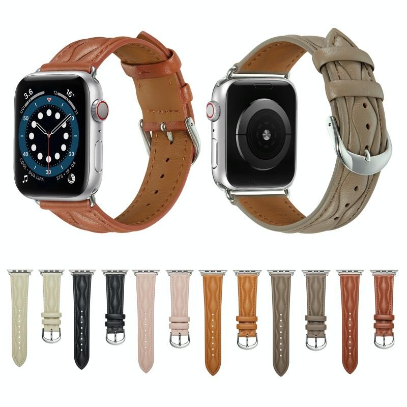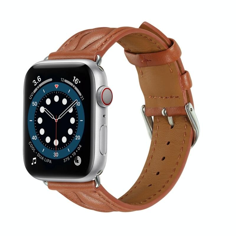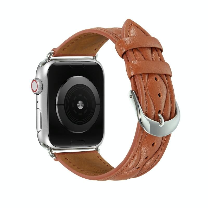 Hyperbolic Wave Leather Strap For Apple Watch Ultra 49mm / Series 8&7 45mm / SE 2&6&SE&5&4 44mm / 3&2&1 42mm (Brown)