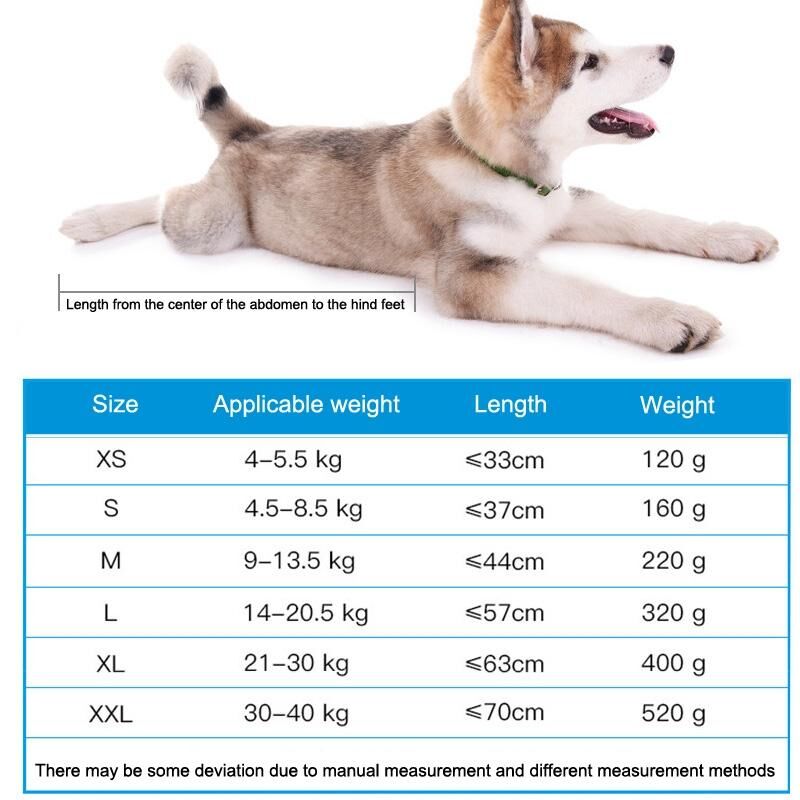 8. Applicable weight: XS: 4-5.5kg, S: 4.5-8.5kg, M: 9-13.5kg, L: 14-20.5kg, XL: 21-30kg, XXL: 30-40kg