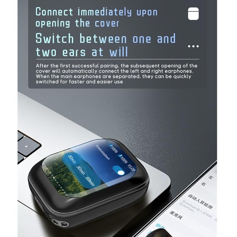 3. Directly connect to the earphone case to play music, no need to connect to the phone to let you listen to music anytime, anywhere