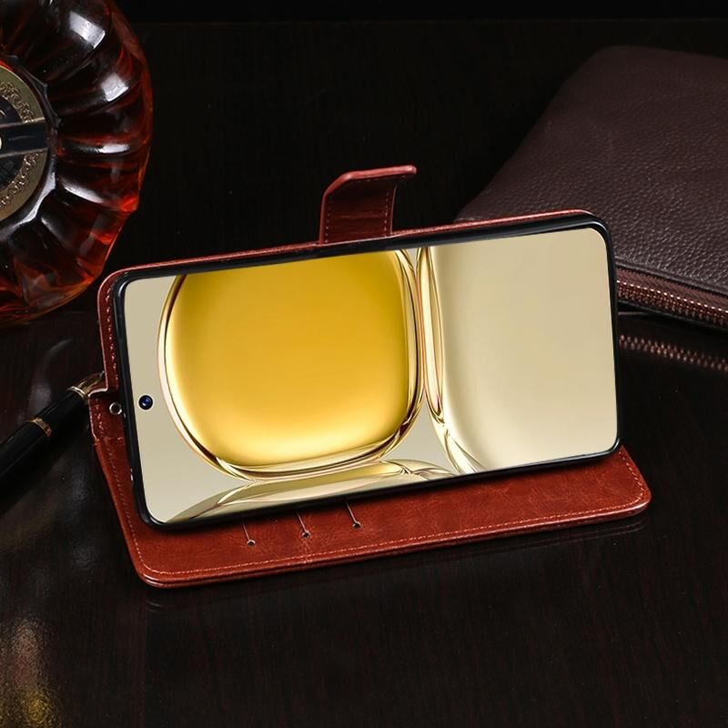 idewei Crazy Horse υφή οριζόντια Flip δερμάτινη θήκη με θήκη & υποδοχές καρτών & πορτοφόλι για Huawei P50 (Rose Red) (idewei)