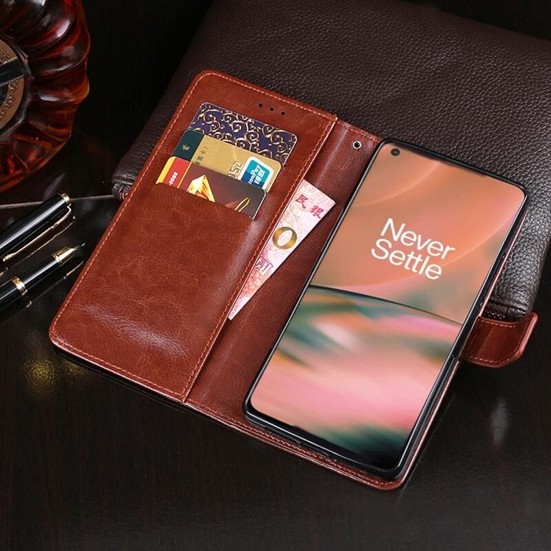 idewei Crazy Horse Υφή οριζόντια Flip δερμάτινη θήκη με θήκη & υποδοχές για κάρτες & πορτοφόλι για OnePlus Nord 2 5G (λευκό) (idewei)